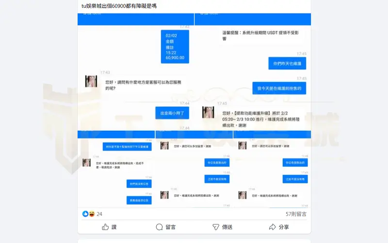 由於TU娛樂城出金緩慢甚至不出金的原因,所以許多玩家懷疑TU娛樂城詐騙,但相信各位看到上面的原因,這傳聞應該就破除了。但有位玩家反映該娛樂城不出金是怎麼回事呢